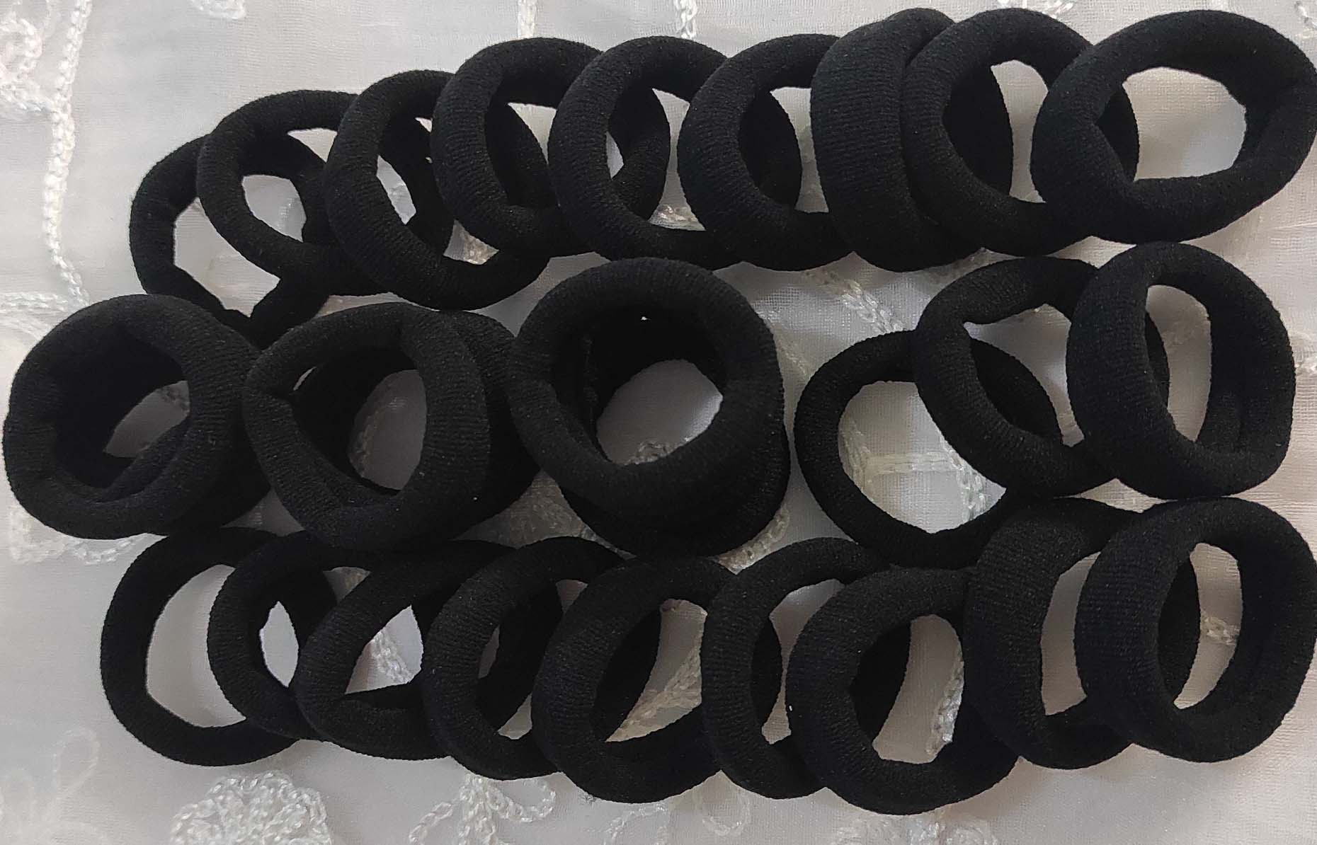 All black Colored elastic hair rubber bands. Thick, soft, non-slip, tight, no damage, stretchable bands for women and girls (pack of 30 Pcs).