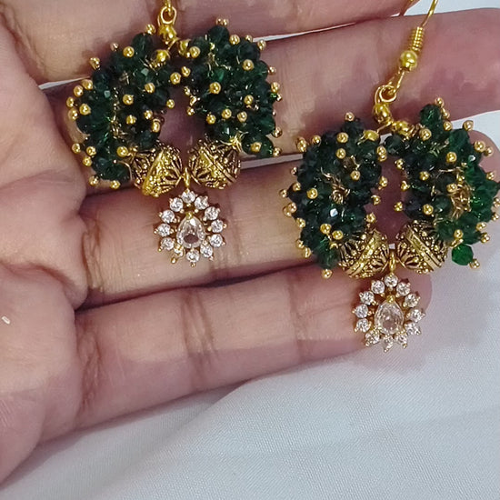 These bold, beaded hoops are a whole vibe—lush emerald clusters, vintage gold accents, and a sparkle drop that hits different.