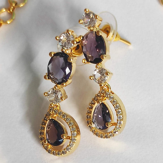 Gold Plated Purple drop and oval stones Necklace Jewellery Set