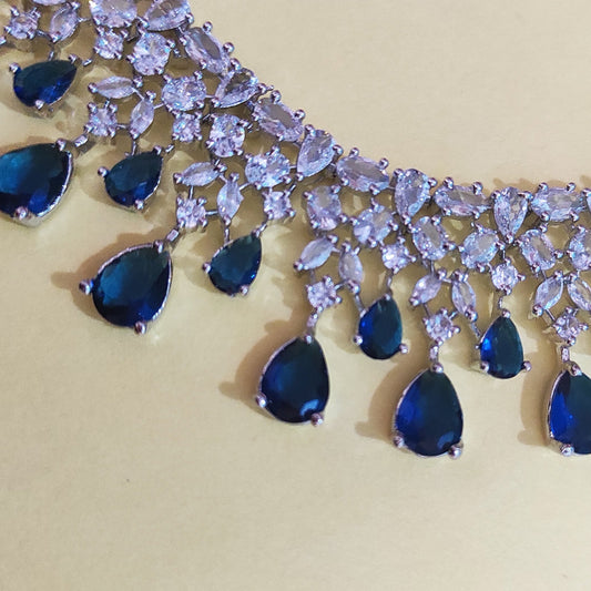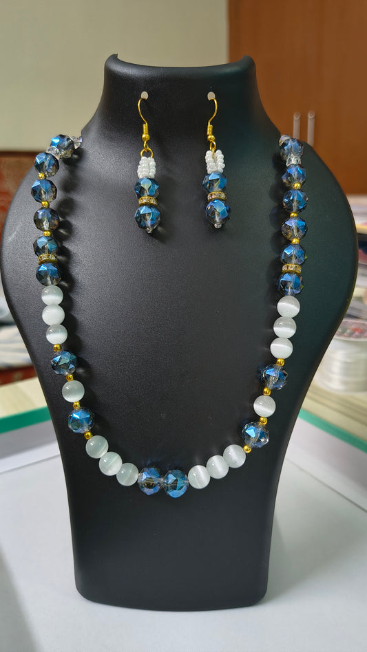 Blue & White Beaded Necklace Earring Set – Handmade Jewelry for Women. Festive, Gift-Ready & Trendy.