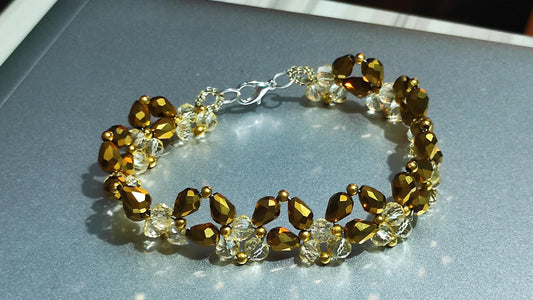 Honey gloss & gold beads handcrafted BOHO & chic style stretch bracelet